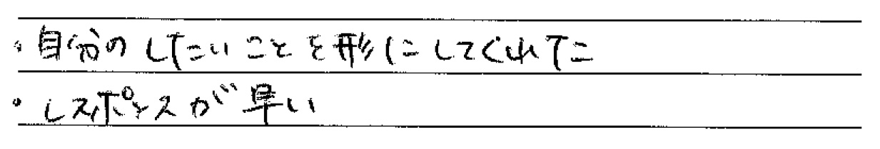 改善してほしい点があれば、率直にお聞かせください。